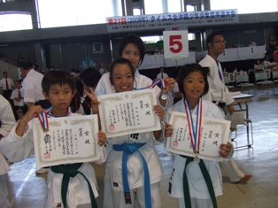 (やせているので、まさに映画ベストキットのダニエルさんみたい) 空手の練習もさぼりがちな坊主なので、正直期待はしてなく、3人で形ををする団体戦なので、他の子に迷惑をかけなければいいな~とマイナスなことばかりを考えていたのだが な なんと3位入賞でした でも話によると 優勝は2チームで2位3位は5チームくらいあるそうな。でも出場チーム18とのことなので、大健闘です。 (団体戦のチームメイト、うちの息子以外は皆女の子です) 後ろの女性が先生。 な なんんと彼女 空手の世界チャンピオンなんです。 やはり指導者がいいと子供は伸びますねー。 で、タイトルのやった~ は空手の大会で頑張ったこともありますが、 来月にこの空手部のメンバーでモンゴルに行けることになりました。 この空手の先生が以前青年海外協力隊でモンゴルに行ってて、その関係で去年 与論島にモンゴルの子供達が空手の交流に来たんですね。 うちにも一人 ホームステイしたんですが、今年は反対にヨロンの子供達がモンゴルに行けることになったんですって。 すごーいですよね。 こんな小さいうちからこんな体験が出来るなんて羨ましいです。俺は行けないのに舞い上がってます。