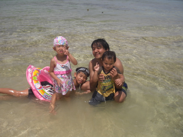 今日はみんなで海に入りました。みんなばっちり日焼けをした模様。 顔がひりひりする。 コーラルホテルのビーチに行ってきました。 ここはプールがありますが、今日は残念ながらプールに水は入ってなかった 。でも海で十分楽しんだようです 。子供達ももう水は怖がらなくなりましたよ。 昨年は海に入るのを嫌がってないてましたが その後はお弁当を買い、外で食べました。 毎週日曜日はだいたい外でお弁当を食べます。ピクニック気分で気持ちいいです。 来週はその写真を載せたいと思います。 今夜は朝戸の七夕祭りがあります。 皆で行ってきまーす。 PR